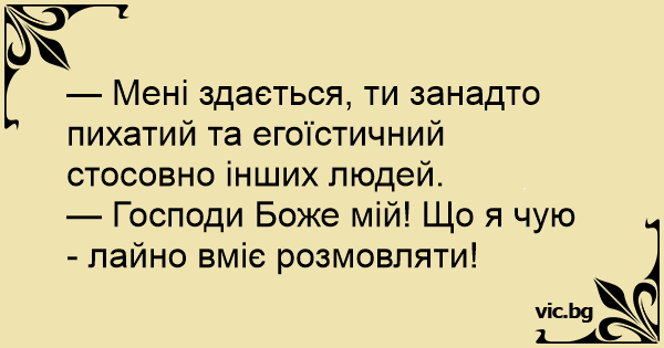 — Мені здається, ти занадто пихатий та егоїстичний стосовно інших людей.