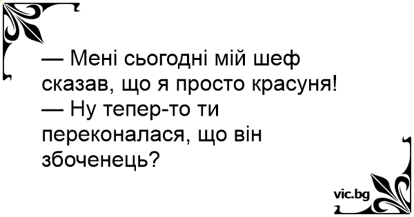 — Мені сьогодні мій шеф сказав, що я просто красуня!