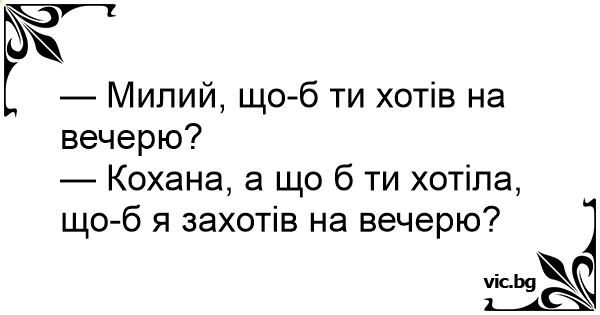 — Кохана, а що б ти хотіла, що-б я захотів на вечерю?
