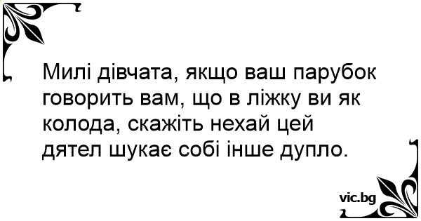 Милі дівчата, якщо ваш парубок говорить вам, що в ліжку ви як колода, скажіть нехай цей дятел шукає собі інше дупло.