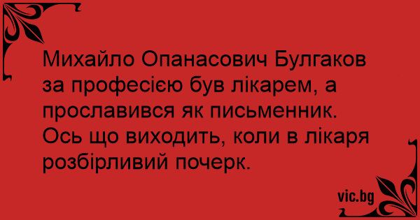 Михайло Опанасович Булгаков за професією був лікарем, а прославився як письменник. Ось що виходить, коли в лікаря розбірливий почерк.