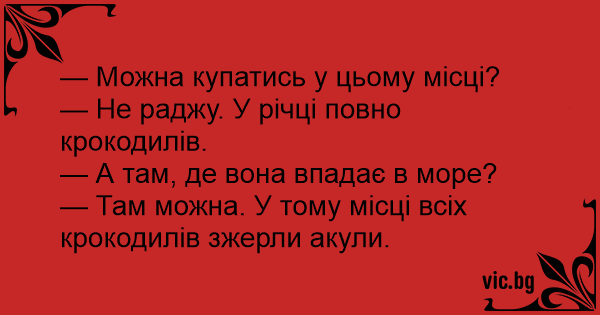 — Там можна. У тому місці всіх крокодилів зжерли акули.