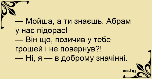 — Мойша, а ти знаєшь, Абрам у нас підорас!