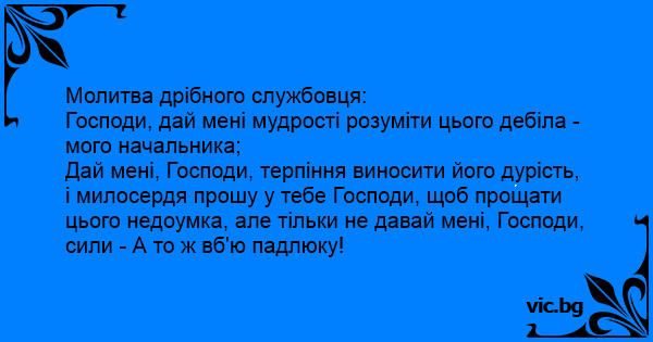 Господи, дай мені мудрості розуміти цього дебіла - мого начальника;