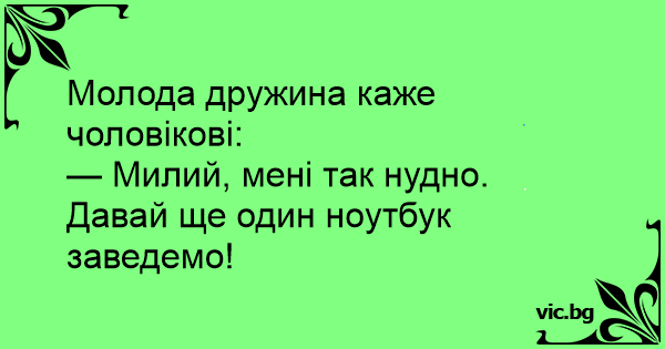 — Милий, мені так нудно. Давай ще один ноутбук заведемо!