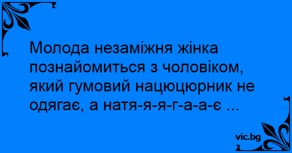 Молода незаміжня жінка познайомиться з чоловіком, який гумовий нацюцюрник не одягає, а натя-я-я-г-а-а-є ...