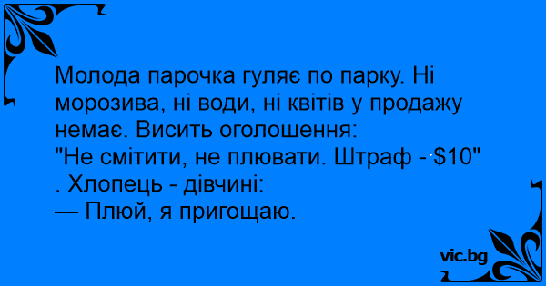 Молода парочка гуляє по парку. Ні морозива, ні води, ні квітів у продажу немає. Висить оголошення: