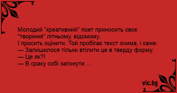 Молодий "креативний" поет приносить своє "творіння" літньому, відомому,
