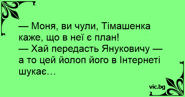 — Хай передасть Януковичу — а то цей йолоп його в Інтернеті шукає…