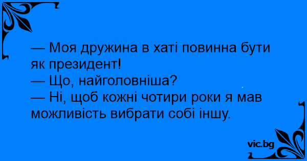 — Моя дружина в хаті повинна бути як президент!
