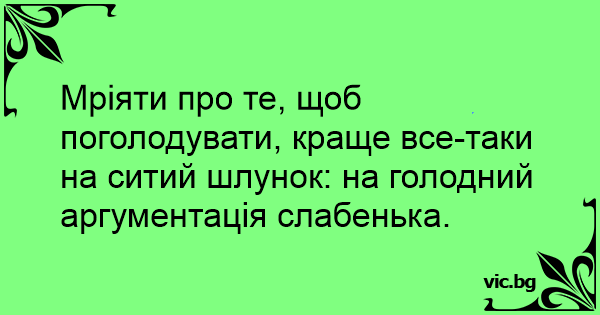 Мріяти про те, щоб поголодувати, краще все-таки на ситий шлунок: на голодний аргументація слабенька.