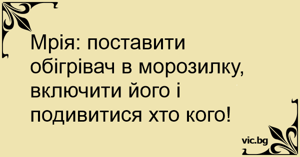 Мрія: поставити обігрівач в морозилку, включити його і подивитися хто кого!