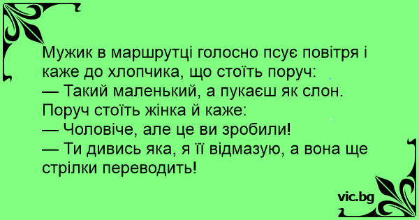 Мужик в маршрутці голосно псує повітря і каже до хлопчика, що стоїть поруч: