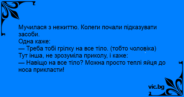 — Треба тобі грілку на все тіло. (тобто чоловіка)
