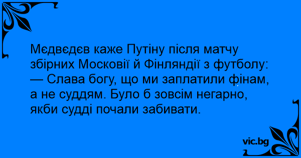 — Слава богу, що ми заплатили фінам, а не суддям. Було б зовсім негарно, якби судді почали забивати.