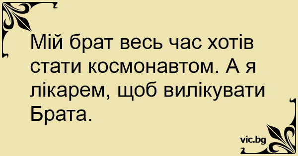 Мій брат весь час хотів стати космонавтом. А я лікарем, щоб вилікувати