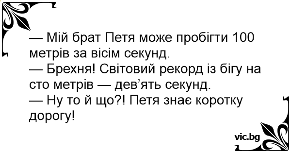 — Мій брат Петя може пробігти 100 метрів за вісім секунд.