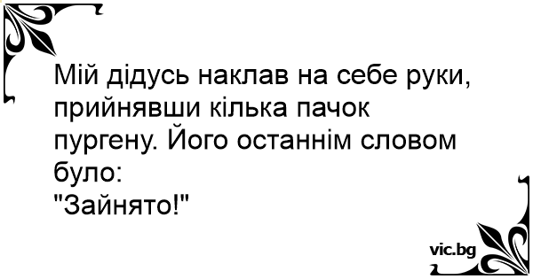 Мій дідусь наклав на себе руки, прийнявши кілька пачок пургену. Його останнім словом було: