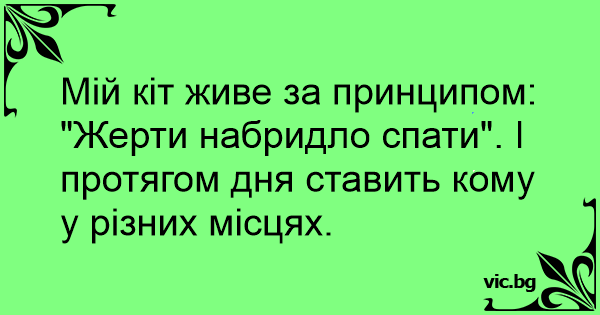 "Жерти набридло спати". І протягом дня ставить кому у різних місцях.