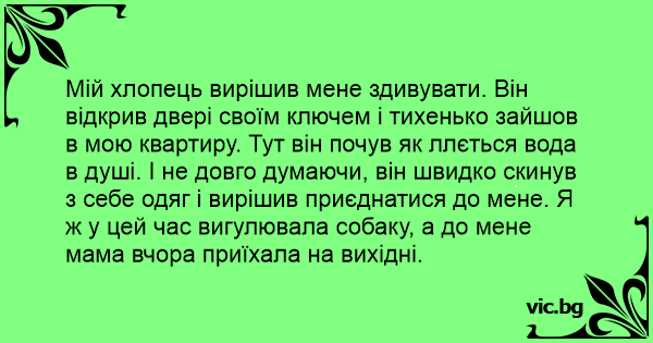 Мій хлопець вирішив мене здивувати. Він відкрив двері своїм ключем і тихенько зайшов в мою квартиру. Тут він почув як ллється вода в душі. І не довго думаючи, він швидко скинув з себе одяг і вирішив приєднатися до мене. Я ж у цей час вигулювала собаку, а до мене мама вчора приїхала на вихідні.