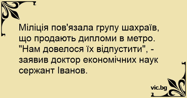 Міліція пов'язала групу шахраїв, що продають дипломи в метро. "Нам довелося їх відпустити", - заявив доктор економічних наук сержант Іванов.