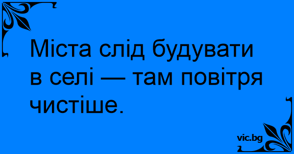 Міста слід будувати в селі — там повітря чистіше.