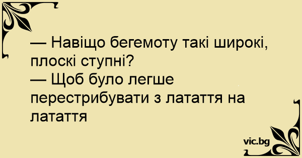 — Навіщо бегемоту такі широкі, плоскі ступні?