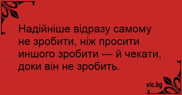 Надійніше відразу самому не зробити, ніж просити иншого зробити — й чекати, доки він не зробить.