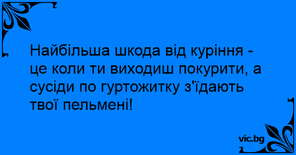 Найбільша шкода від куріння - це коли ти виходиш покурити, а сусіди по гуртожитку з'їдають твої пельмені!
