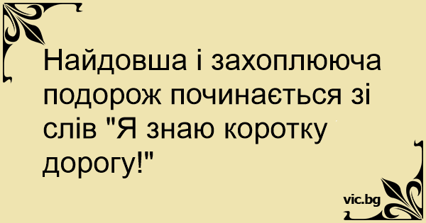 Найдовша і захоплююча подорож починається зі слів "Я знаю коротку дорогу!"