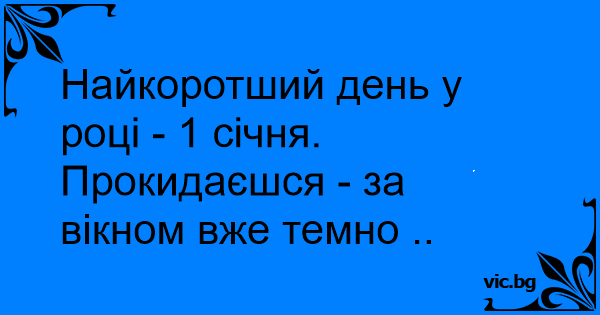 Найкоротший день у році - 1 січня. Прокидаєшся - за вікном вже темно ..