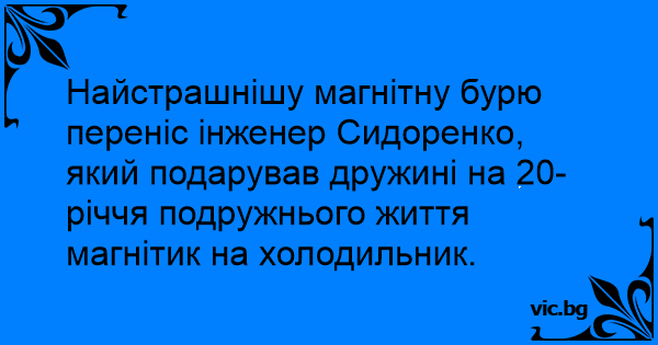 Найстрашнішу магнітну бурю переніс інженер Сидоренко, який подарував дружині на 20-річчя подружнього життя магнітик на холодильник.