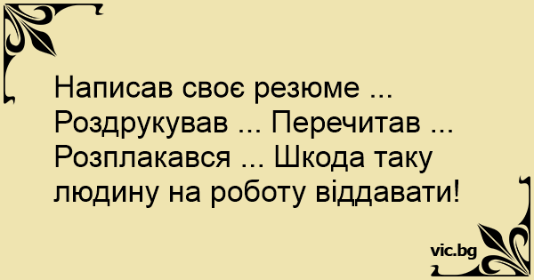 Написав своє резюме ... Роздрукував ... Перечитав ... Розплакався ... Шкода таку людину на роботу віддавати!