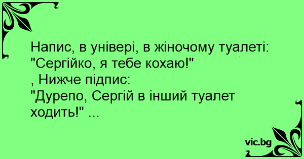 "Дурепо, Сергій в інший туалет ходить!" ...