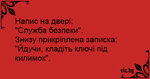 "Йдучи, кладіть ключі під килимок".