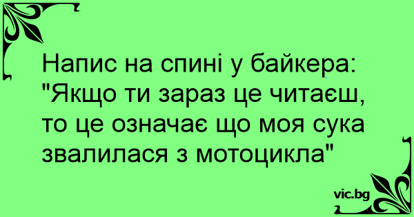 "Якщо ти зараз це читаєш, то це означає що моя cуka звалилася з мотоцикла"