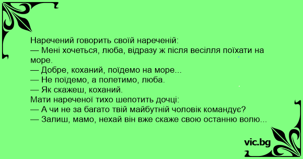 — А чи не за багато твій майбутній чоловік командує?