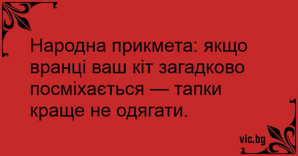 Народна прикмета: якщо вранці ваш кіт загадково посміхається — тапки краще не одягати.