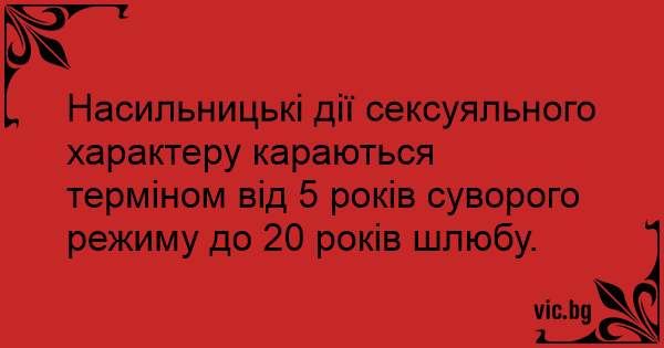 Насильницькі дії сексуяльного характеру караються терміном від 5 років суворого режиму до 20 років шлюбу.