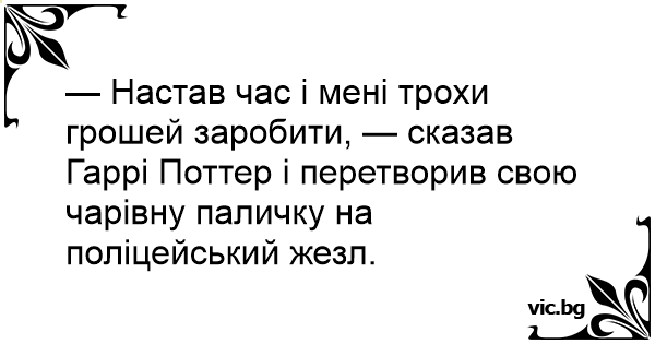 — Настав час і мені трохи грошей заробити, — сказав Гаррі Поттер і перетворив свою чарівну паличку на поліцейський жезл.