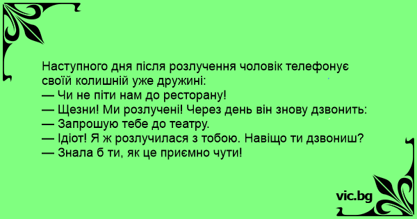 — Щезни! Ми розлучені! Через день він знову дзвонить: