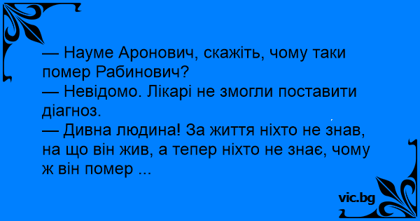 — Науме Аронович, скажіть, чому таки помер Рабинович?