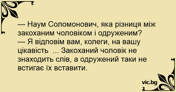 — Наум Соломонович, яка різниця між закоханим чоловіком і одруженим?