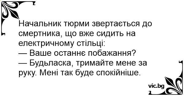 Начальник тюрми звертається до смертника, що вже сидить на електричному стільці: