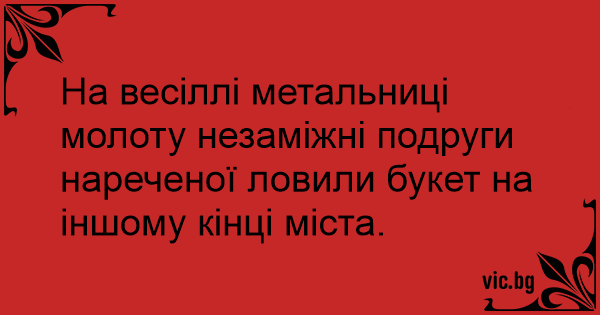 На весіллі метальниці молоту незаміжні подруги нареченої ловили букет на іншому кінці міста.