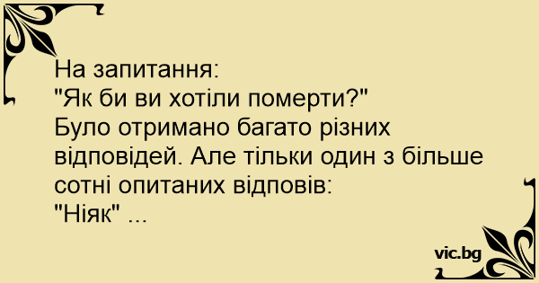 Було отримано багато різних відповідей. Але тільки один з більше сотні опитаних відповів: