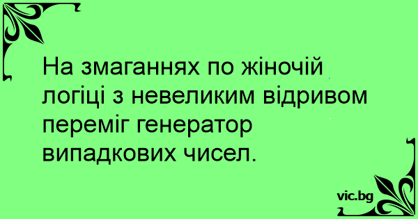 На змаганнях по жіночій логіці з невеликим відривом переміг генератор випадкових чисел.