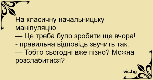 — Це треба було зробити ще вчора! - правильна відповідь звучить так: