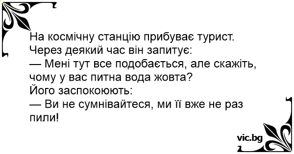 На космічну станцію прибуває турист. Через деякий час він запитує: