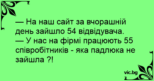 — У нас на фірмі працюють 55 співробітників - яка падлюка не зайшла ?!